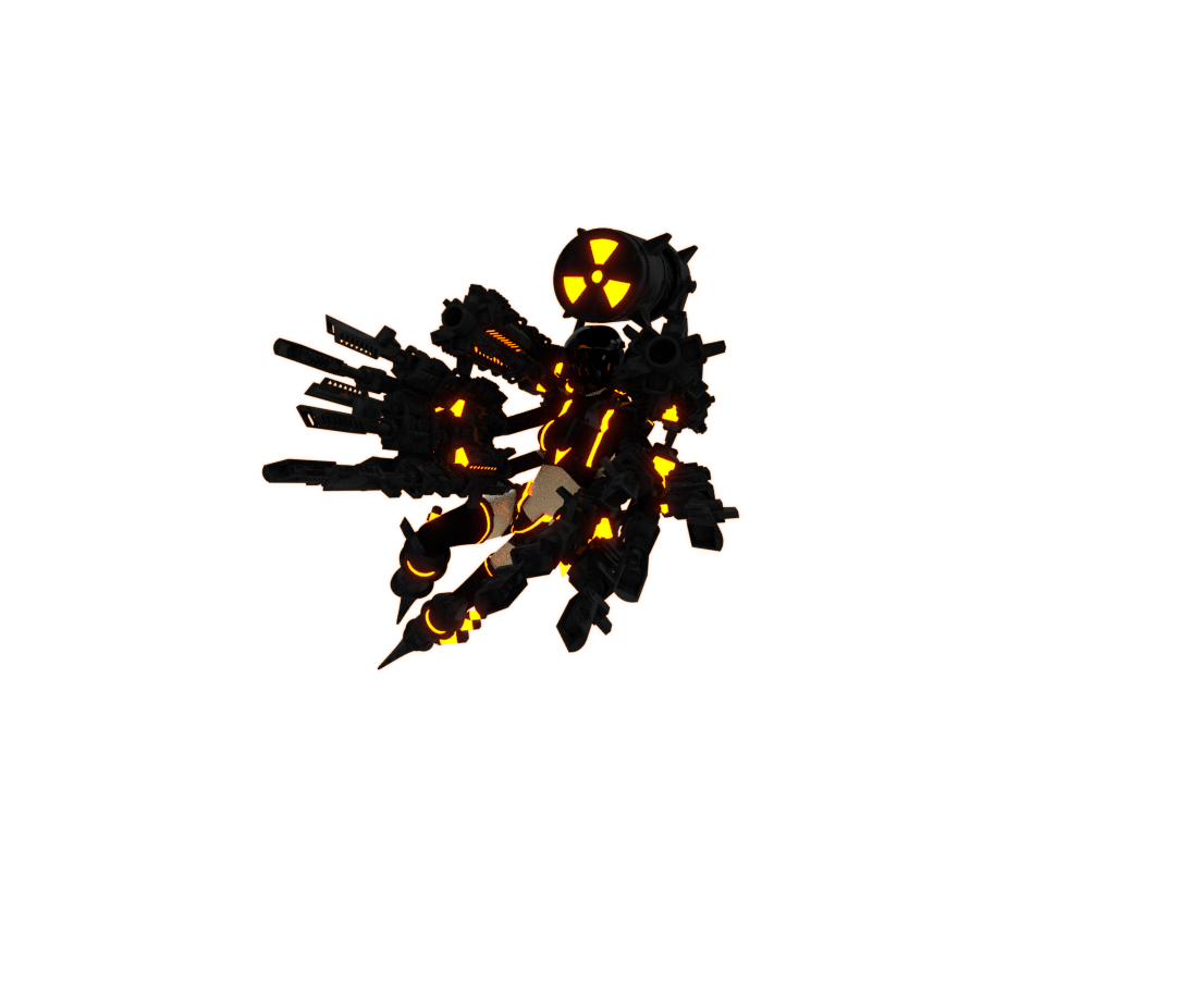 Overload: Stops movement then charge for 2 seconds a nuclear nuke with a high damage and large radius, watch out to not kill yourself